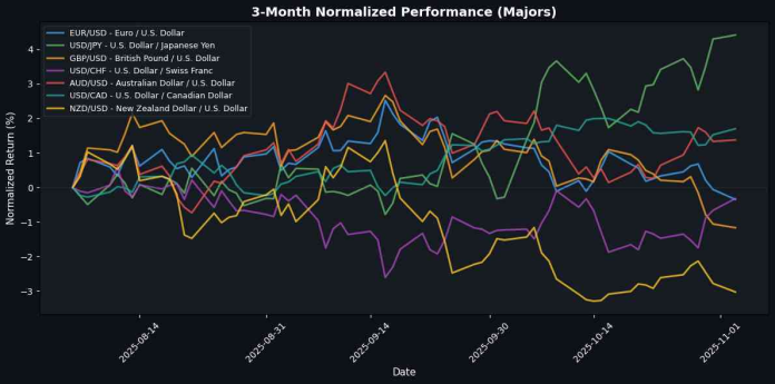 Conversely, the Euro (EUR/USD) and New Zealand Dollar (NZD/USD) are underperforming, with losses of 0.29% and 0.26%, respectively, reflecting market concerns about their economic outlooks. The British Pound (GBP/USD) also shows weakness, down 0.11%, as traders assess the impact of ongoing economic challenges in the UK. Overall, the market dynamics favor the U.S. Dollar, indicating a potential shift in risk sentiment.